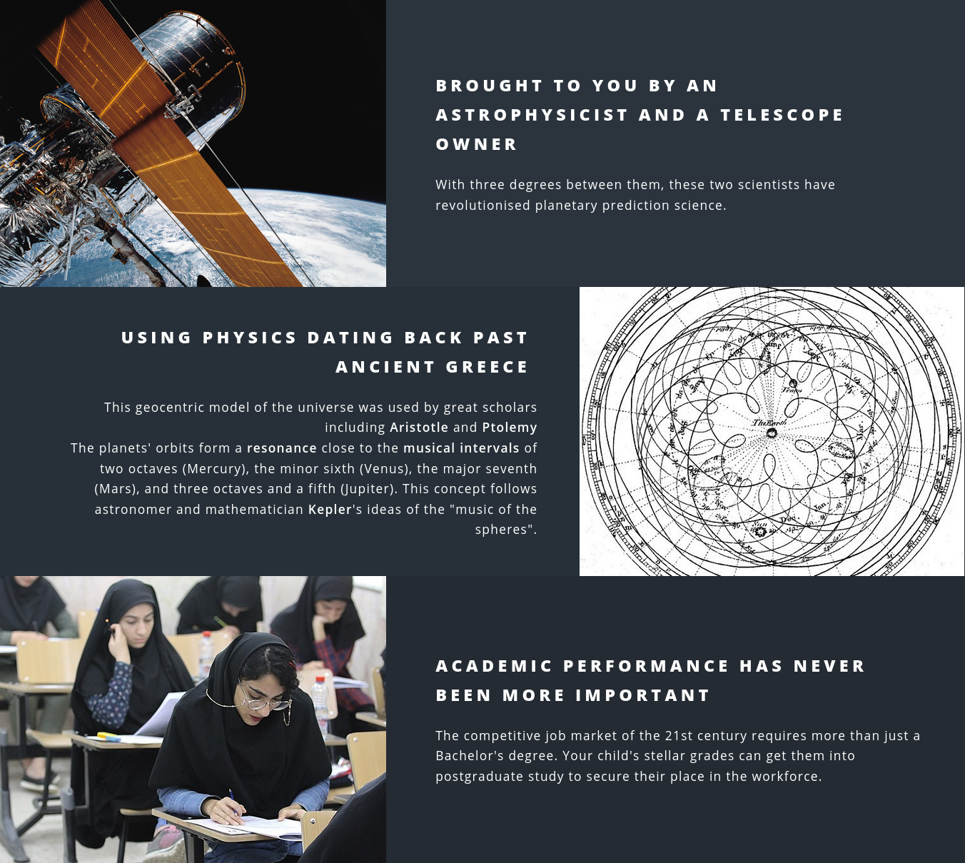 Brought to you by an astrophysicist and a telescope owner, GPAstro uses planetary science originating from earlier than Ancient Greece, used by great scholars such as Aristotle, Ptolemy, and Kepler, to predict the GPA of your future child by the date and time of their conception.