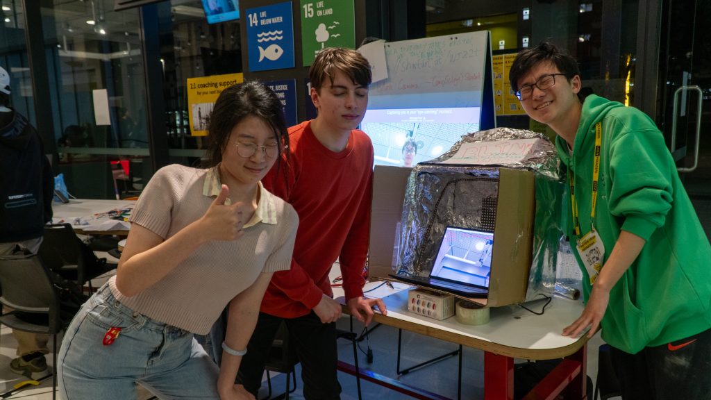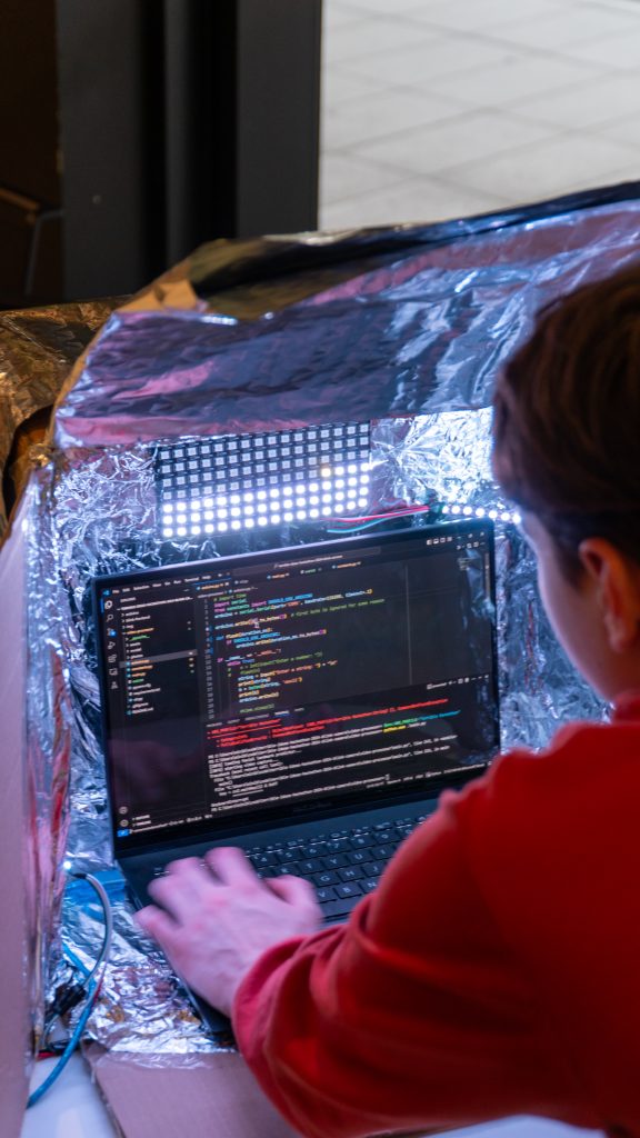 Staff took a photo of us when we were still thinking about what should we do, and the flash light made us blink. It inspired us. We start our project. We have a powerful big LED matrix that can make everyone blink. At the mean time we apply AI techniques to detect when the subject’s eyes are closed. We also set up a web page to keep their terrible memories.