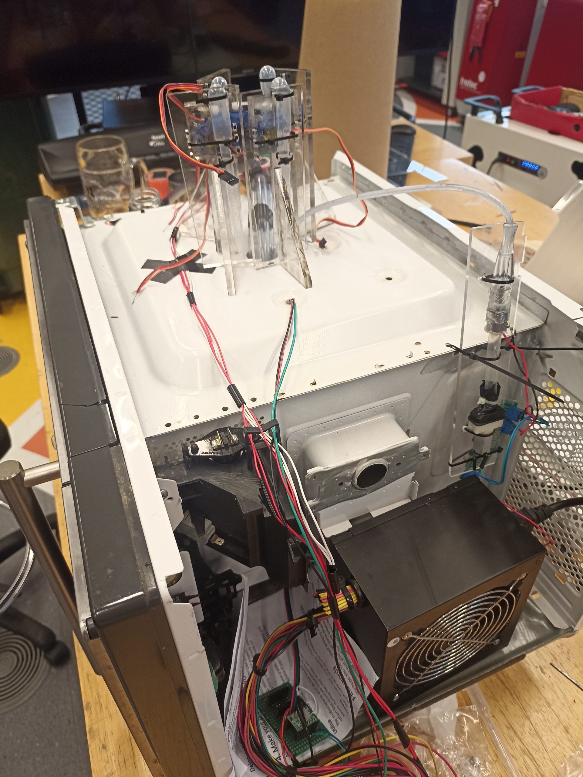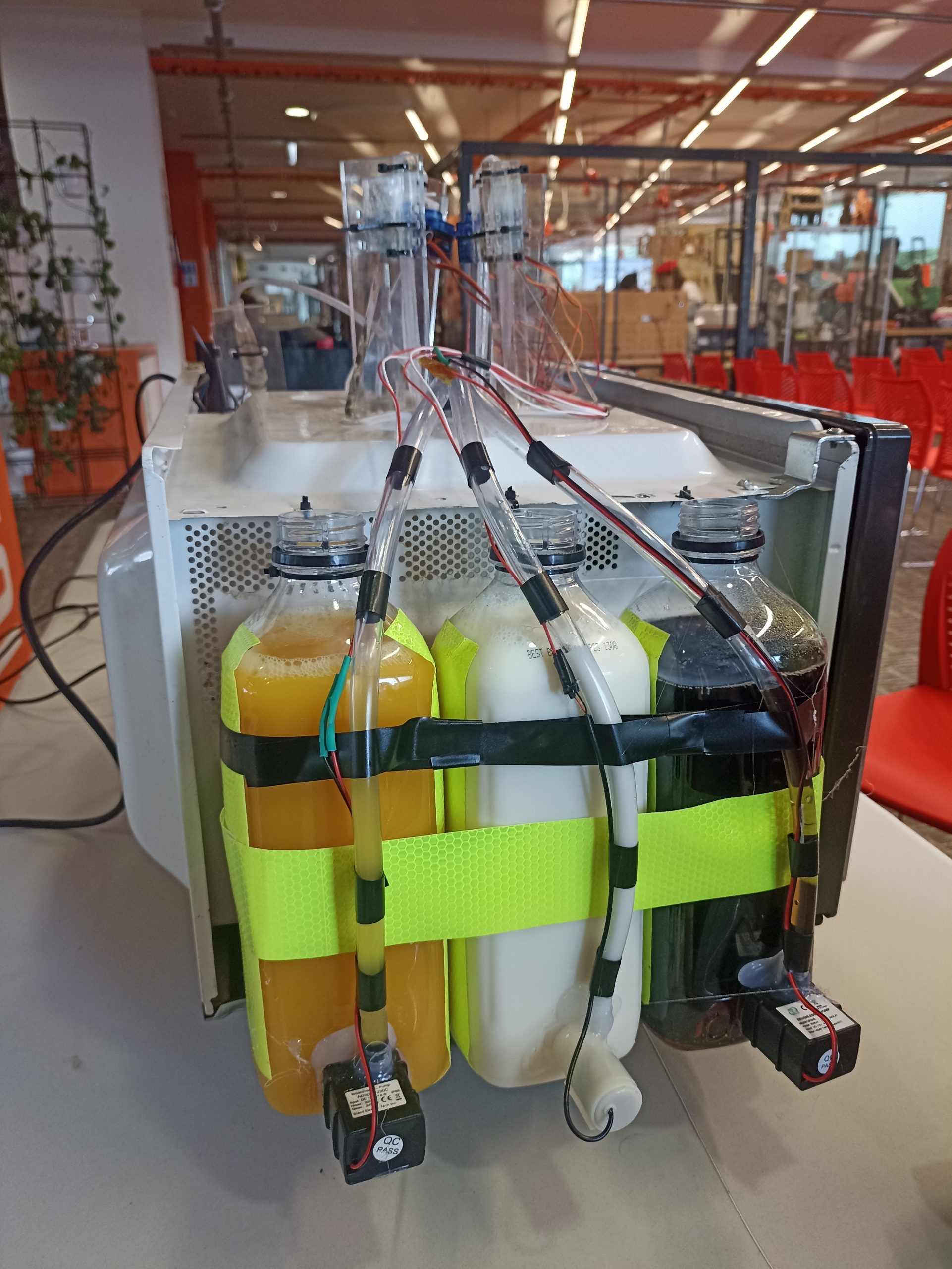 A crowd-controlled drink mixing machine where users choose what is added to the drink next.