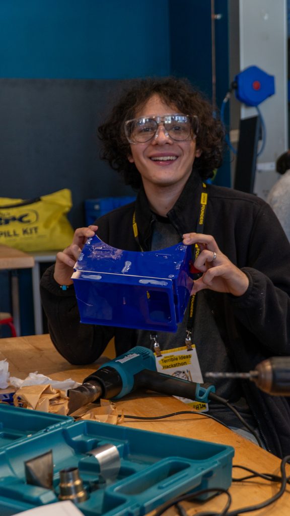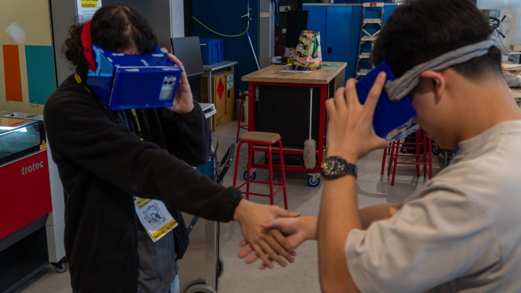 “My mom used to say, “Think about what it feels like to be in the other person’s shoes.” Apparently, I took it too literally. It is a setup that swaps the views of two people by having a video call with each other and pointing the video away from themselves. It is so disorienting and confusing that I would call it the worst thing ever made, just because it took me 3 hours to recalibrate back to my original view. The only failure we had with our design was the tightness and comfort of the headset that stores the phones within them, since it was either too tight or too heavy.”