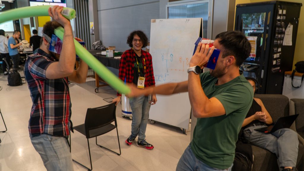 Custom VR goggles that swap your point-of-view with someone else! It’s like an out-of-body experience!