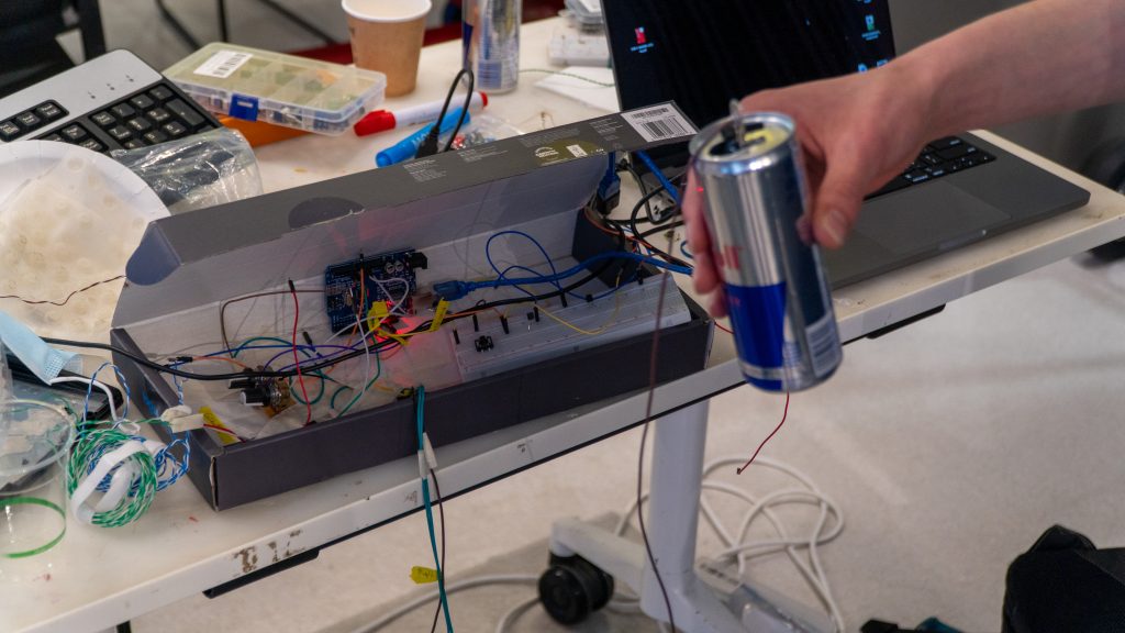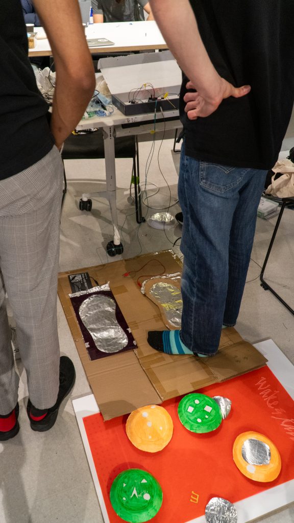 When the alarm rings, you have to follow the melody played by tapping the right button with your feet. If you get the melody right, the alarm stops. If you don’t get the melody right, the melody will be repeated at a higher volume, until you get the right melody.